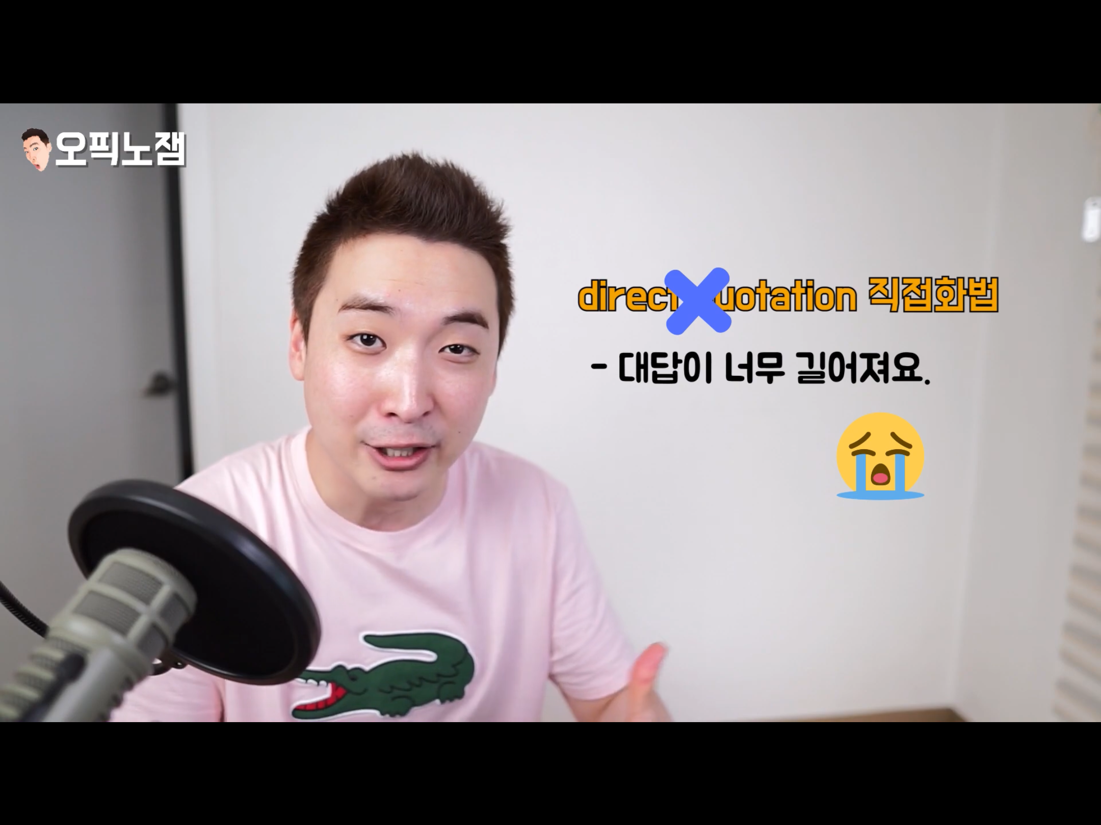 이 때 과거 경험 이야기할 떄 직접화법 쓰지 말자. 왜냐하면 대답이 너무 길어지기 떄문이다.