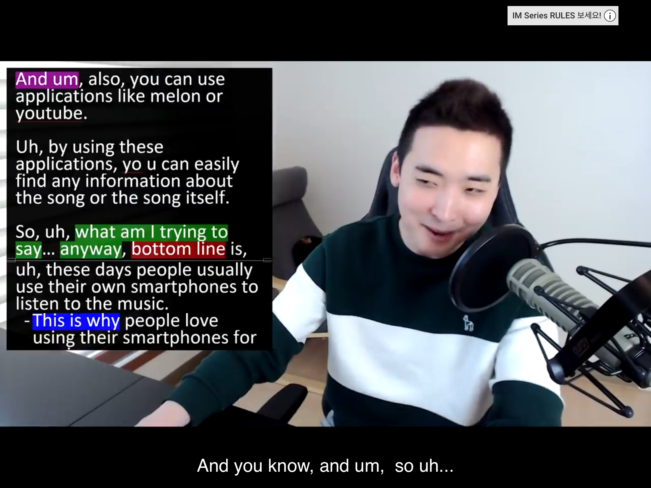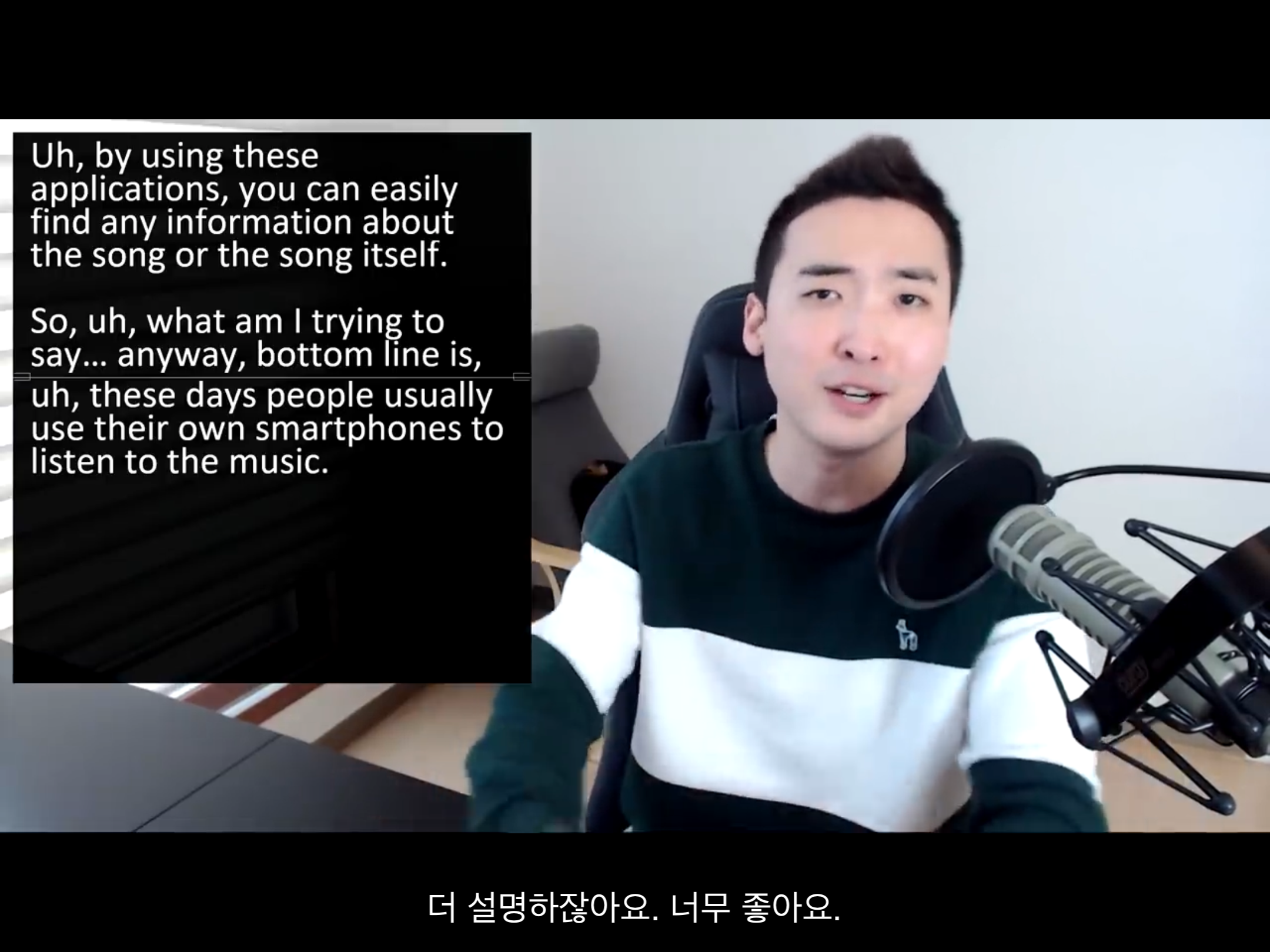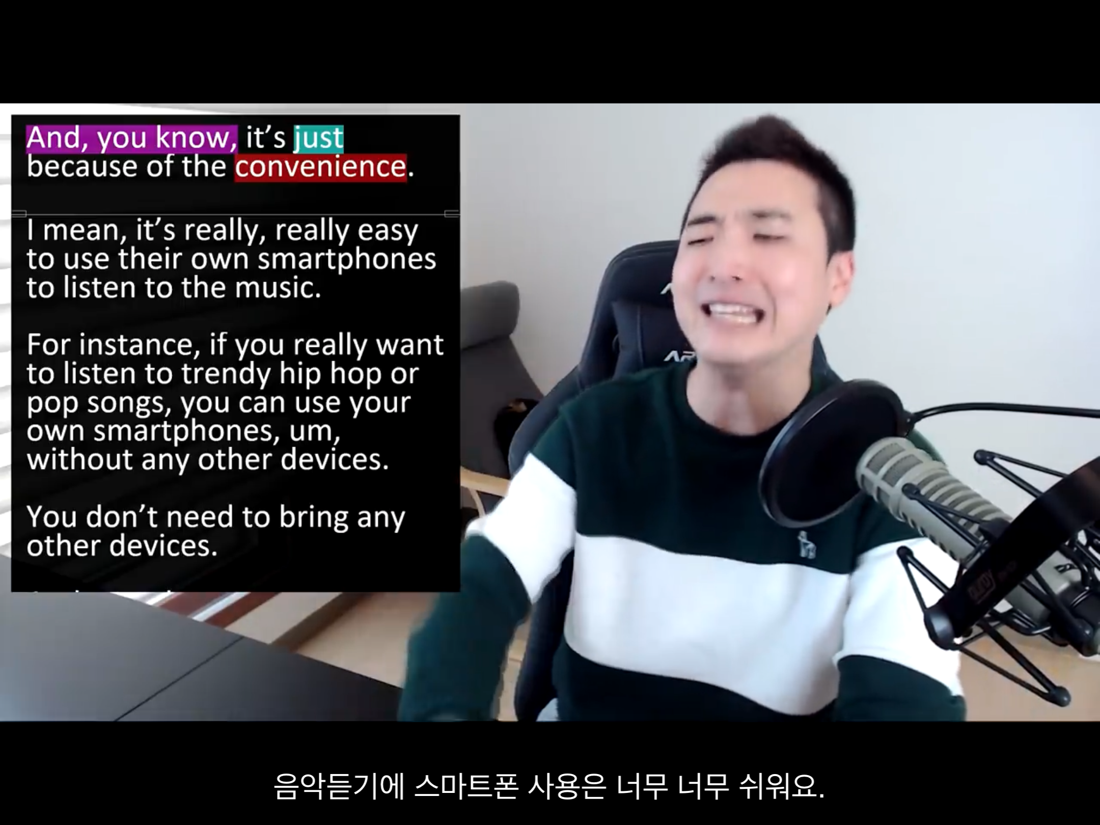 여기까지 메인포인트느 좋았다 스마트폰으로 음악을 듣는다. 왜냐하며 ㄴ쉽고 편하기 때문이다.