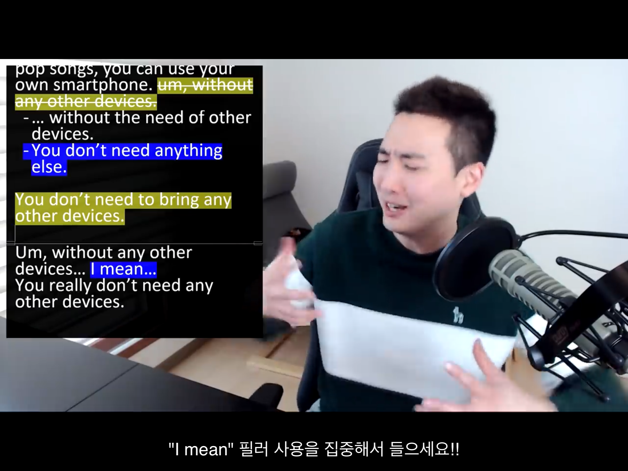 I mean이라는 필러를 써서 쑥색 문장을 다시 표현해보았다.