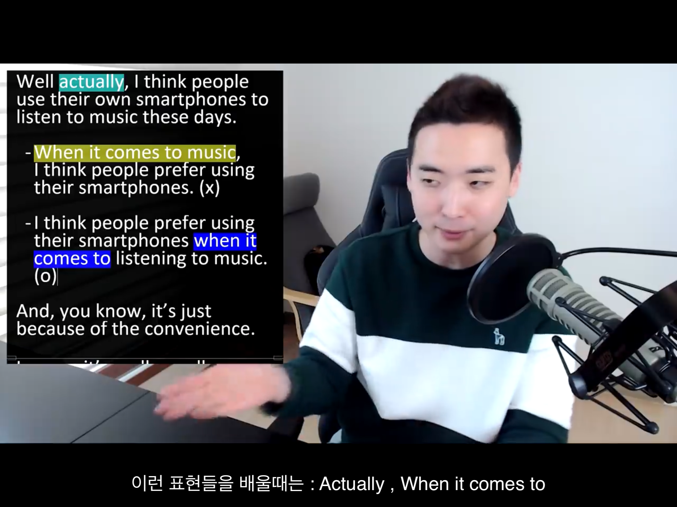 그리고 when it comes to 표현도 처음에 말하지 말고 중간 부분에 넣어서 말하자.