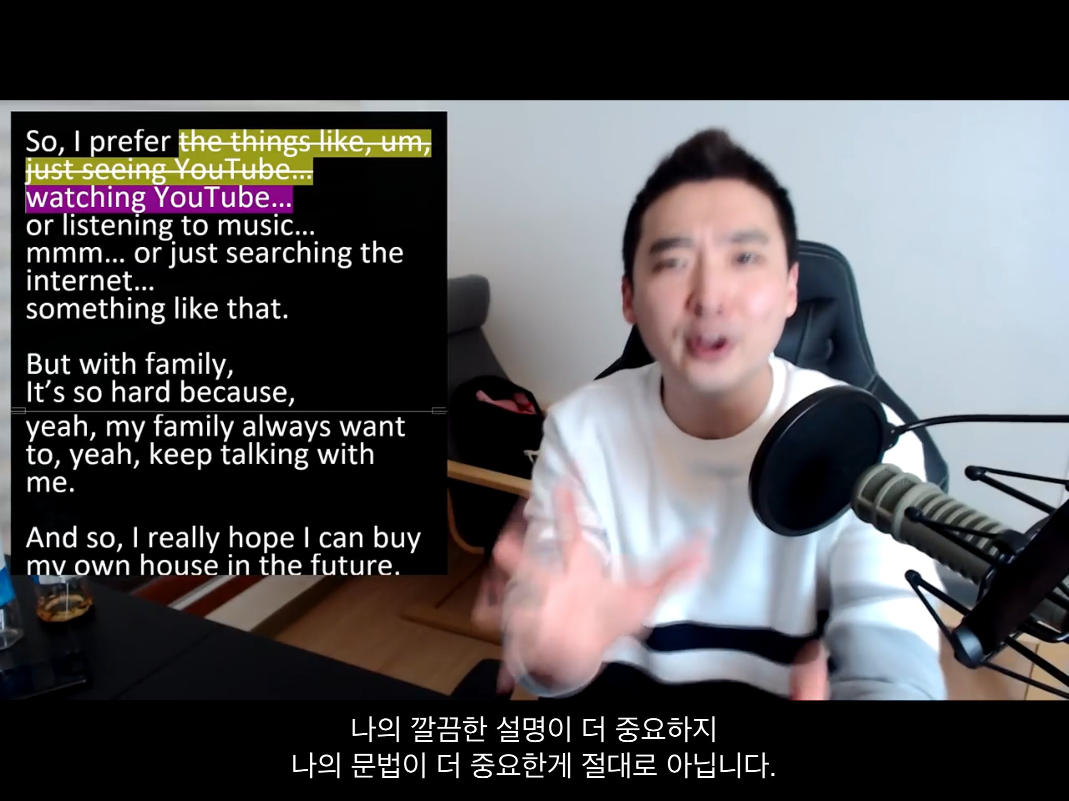 많은 학생들이 그 이야기를 다 생각하면서 그 다음에 다 말하려고 노력하는데 그건 엄청 어렵고 버벅되게 될 수 밖에 없다.