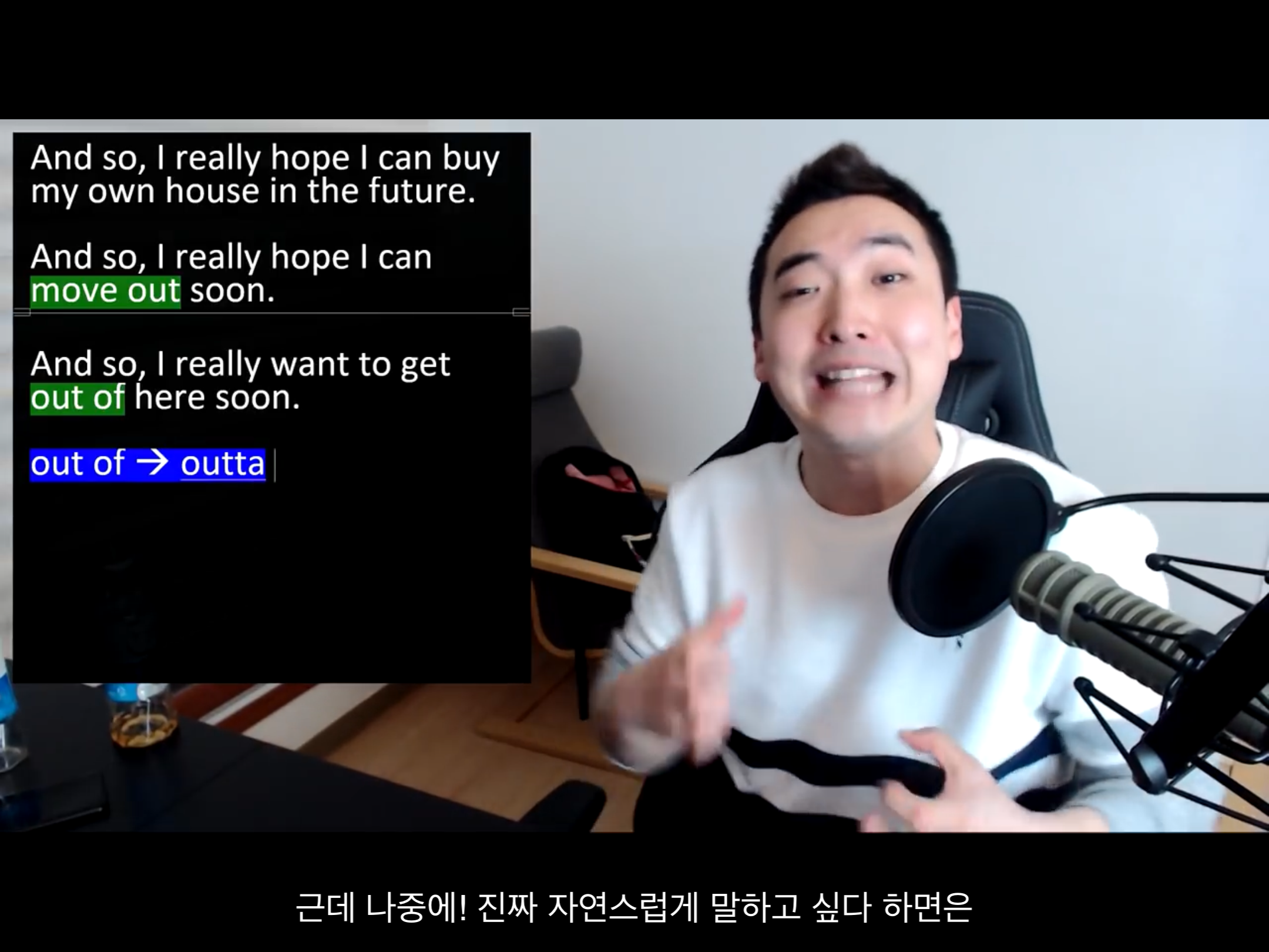 -> out of = outta (발음, 억양 어렵다. 나중에 자연스럽게 말하고 싶다하면 연습해보라)