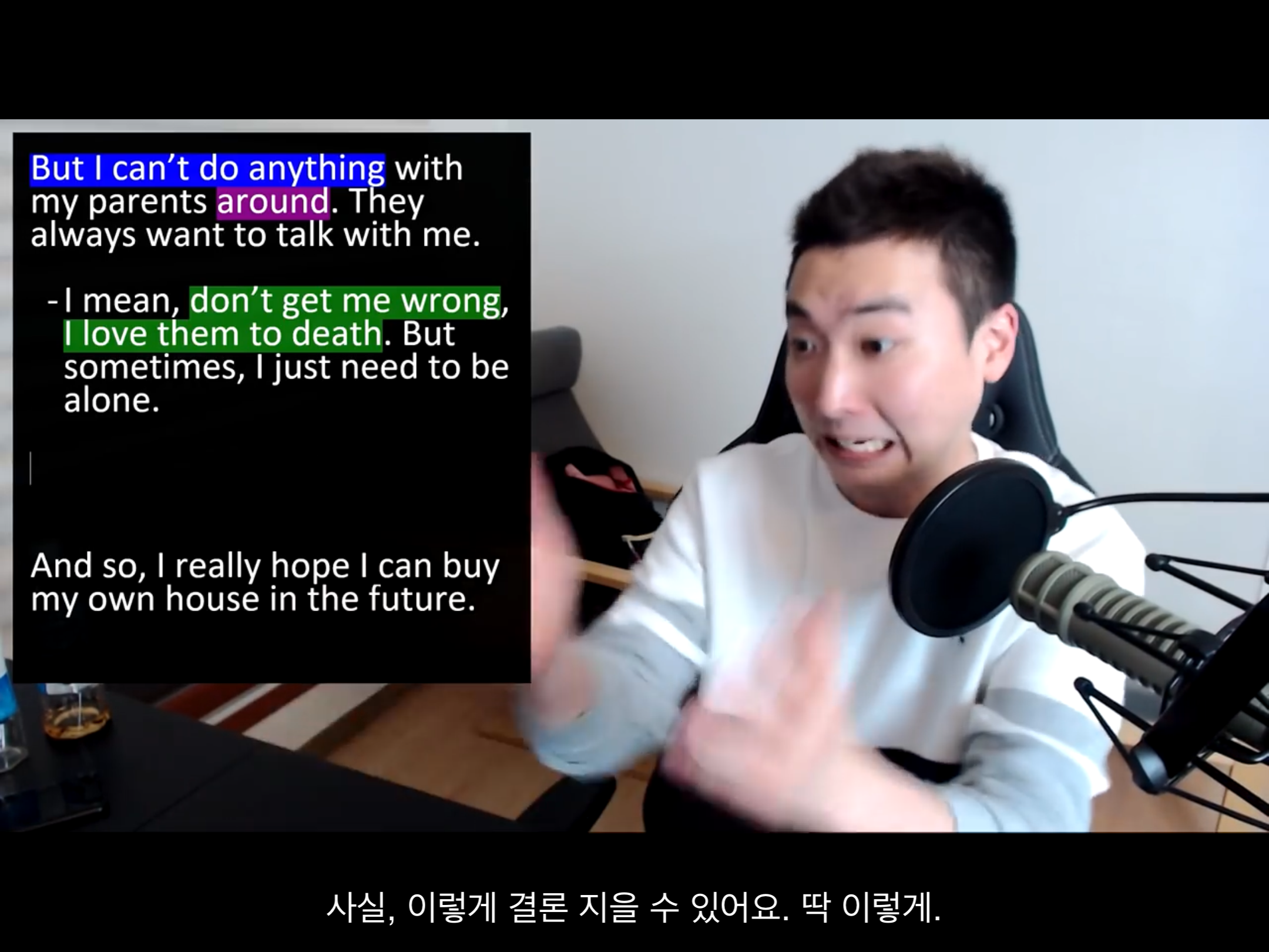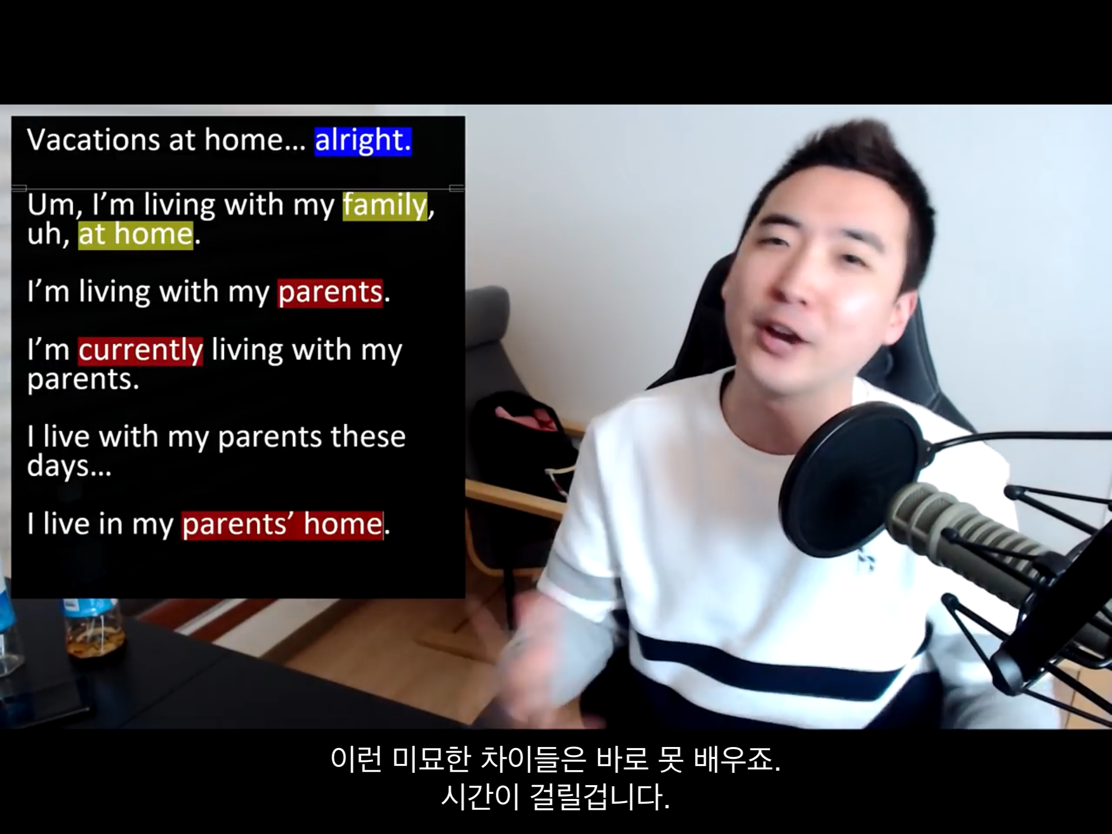 아, 나는 집에서 휴가를 보낼 떄 혼자 있고 싶지만 부모님때문에 어렵다.