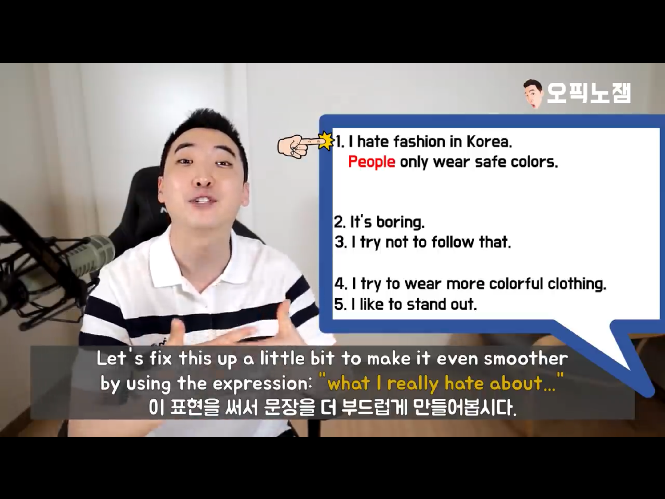 사람에 대해서 말하는 것이 나쁜 것은 아니지만 감정을 잊어버리면서 말하기 떄문에 시험에 ㅈㅇ안 좋고 전반적인 영어에도 안 좋다.